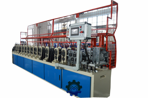 The U track roll forming machine is composed by the following elements: Decoiler, leveling beach, main roll forming machine, shearing system, PLC control system, hydraulic station and run out table.